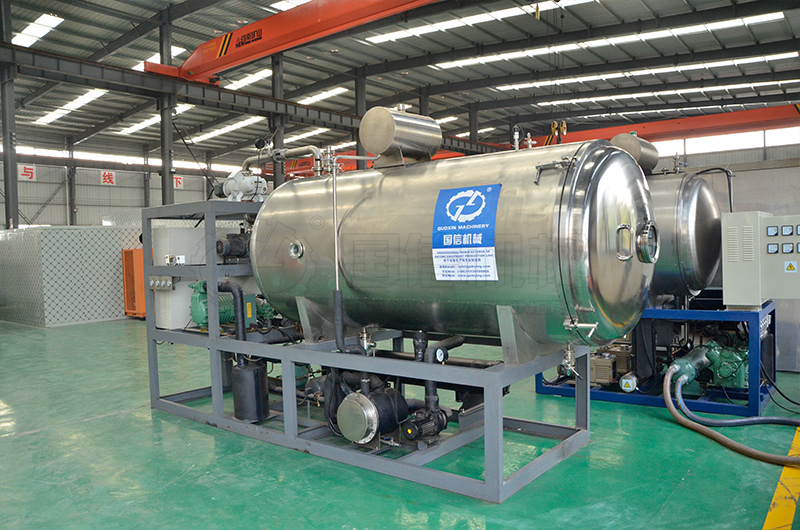 冷凍真空干燥是將切制好的物料,在封閉的容器中快速冷凍,然后降低容器內的壓力,使速凍的物料處于真空狀態下,再加熱使物料內部的冰晶直接升華成水蒸氣排出,物料在低溫狀態下脫水干燥。干燥后產品的營養成分、色澤、味道、形狀等變化很小,產品質量較高。但冷凍真空干燥設備投資大、運行成本高,對于效益好、經濟價值高、要求嚴格、產量不大的物料進行干燥比較適用,如人參、枸杞、黃氏等。目前,國內在脫水蔬菜加工中,冷凍真空干燥應用較少。