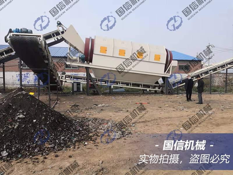 陳腐垃圾處理時通過分選系統(輸送機、滾筒式、風選機、跌盤篩、除鐵器等設備組合)分選出生活垃圾中的可回收循環利用物質、可燃物、有機物等。經粗碎后,由帶式輸送機送至滾筒篩進行篩分,垃圾大小在40mm以上稱為 篩上物,40mm以下稱為篩下物。大于40毫米的物料通過輸送設備輸送到風選系統處理,由風選系統分離出的輕質可燃 物壓縮外送到焚燒發電廠焚燒發電,重的惰性物質通過破碎分選外送,最終用于路基材料或再生建材原料。