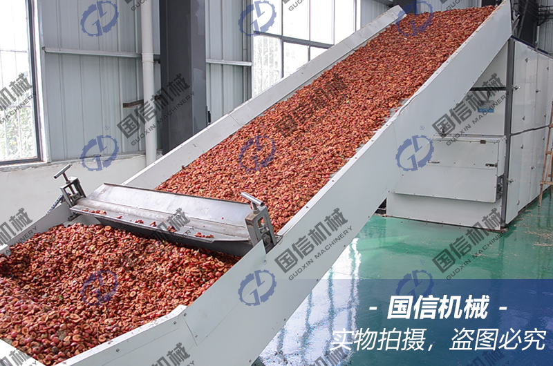 導讀:網帶式山楂烘干機適用于山楂片的烘干加工,可以按客戶的要求,根據加工量大小來設計流水化生產。